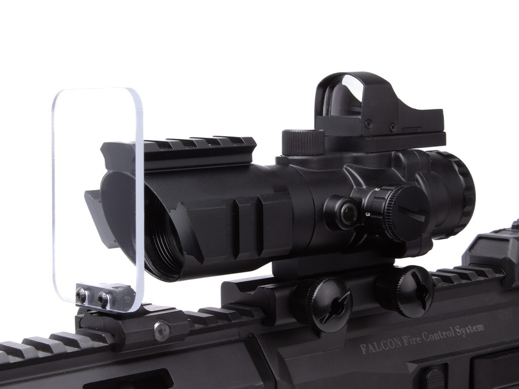 Proteja a sua mira holográfica ou ótica contra danos causados ​​pelos BBs de airsoft com a lente de proteção AirsoftPro. Este acessório simples, mas eficaz, atua como um escudo contra impactos que podem partir ou danificar a sua mira, que é cara.
