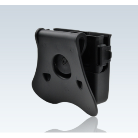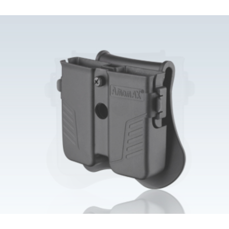 Disponível em 5 formas de transporte para os carregadores sobressalentes, a bolsa universal para dois carregadores é adequada para esportes de tiro, uso tático, defesa pessoal, etc. Pode ser montada em todas as plataformas Amomax, como suporte para perna ou clipe para cinto de pistola.