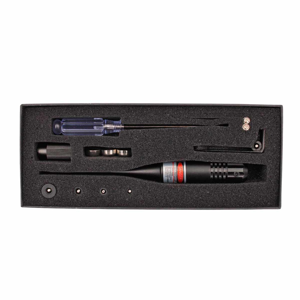 O seu funcionamento é simples: o colimador é inserido na boca do cano utilizando os pequenos adaptadores incluídos, ajustados de acordo com o calibre da sua arma. Uma vez posicionado, projeta um laser vermelho nítido diretamente no alvo, proporcionando uma referência visual imediata. Só precisa de alinhar a retícula da sua mira com o ponto do laser para obter um ajuste preliminar preciso, aproximando-o do centro do alvo na primeira tentativa e garantindo um desempenho ideal durante as suas sessões de tiro.