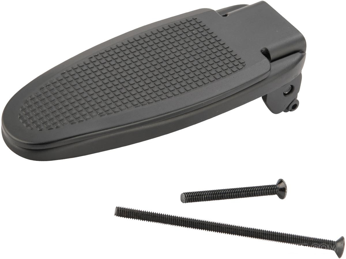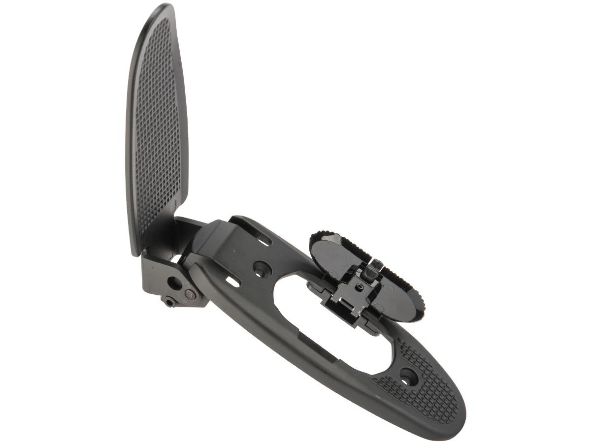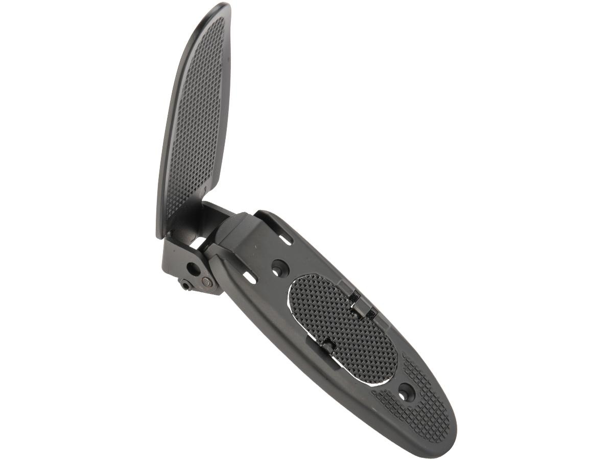 A coronha dobra-se para cima para proporcionar uma superfície de tiro estável