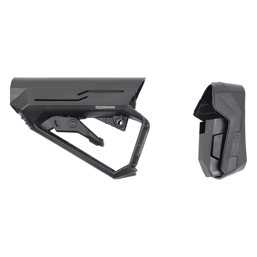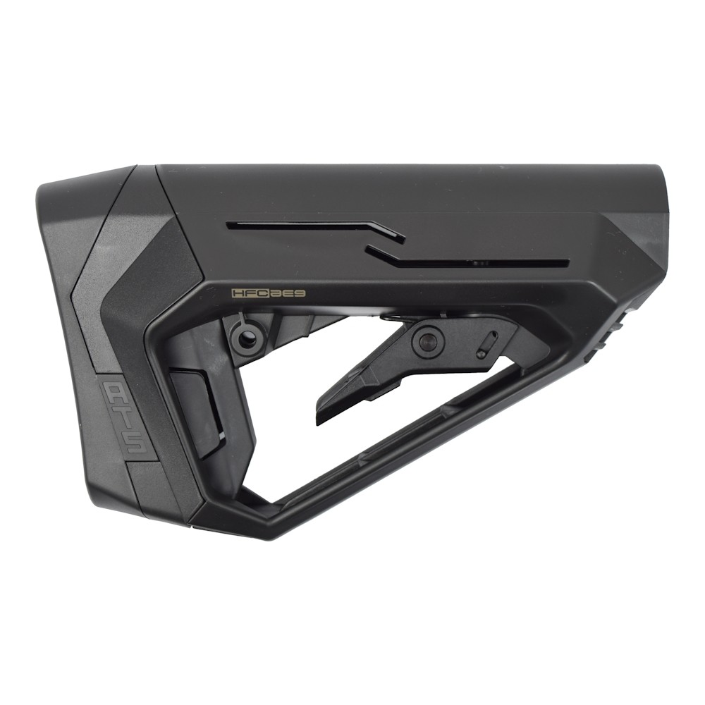 CORONHA RETRÁTIL CONSTRUÇÃO EM POLÍMERO ACESSO RÁPIDO AO COMPARTIMENTO DA BATERIA ADEQUADO PARA RIFLES DA SÉRIE M4 DIMENSÕES 205x125x70mm PESO 280g COR PRETA