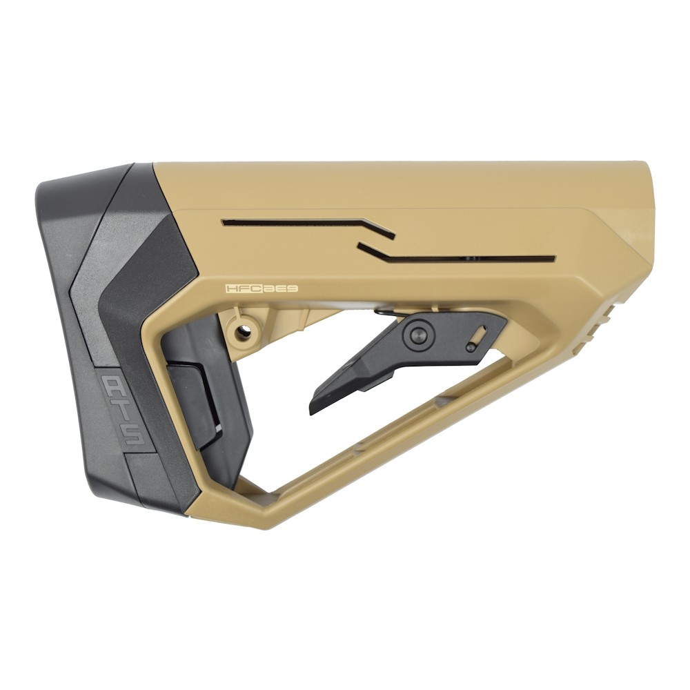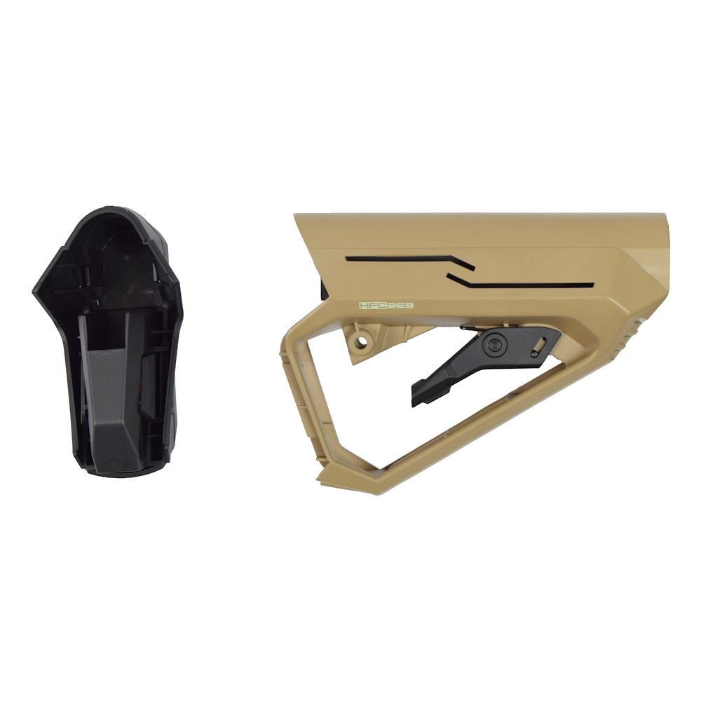 CORONHA RETRÁTIL CONSTRUÇÃO EM POLÍMERO ACESSO RÁPIDO AO COMPARTIMENTO DA BATERIA ADEQUADO PARA RIFLES DA SÉRIE M4 DIMENSÕES 205x125x70mm PESO 280g COR DARK EARTH