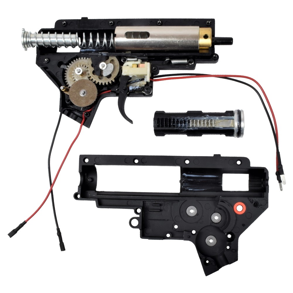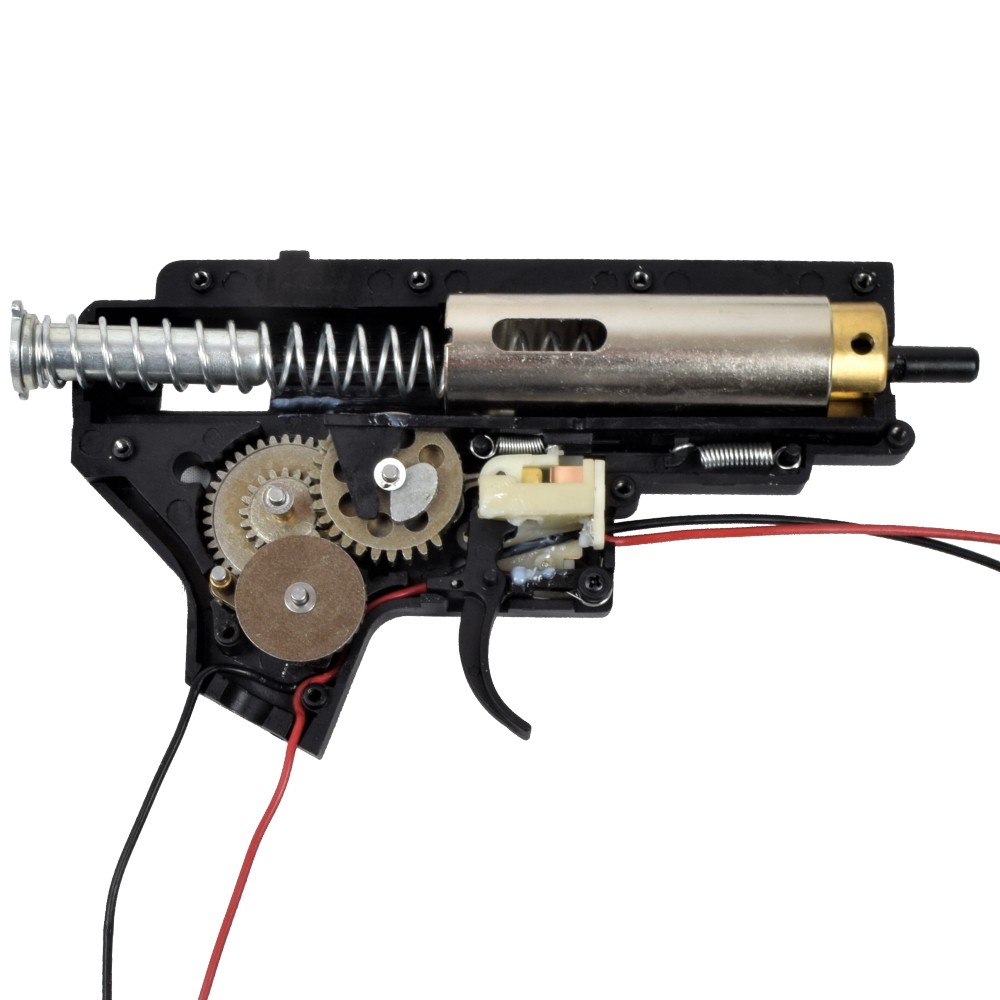 Gearbox metálicaBuchas de 8mmCompatível com réplicas elétricas J.G. Works série M4 e modelos compatíveisFiação frontal