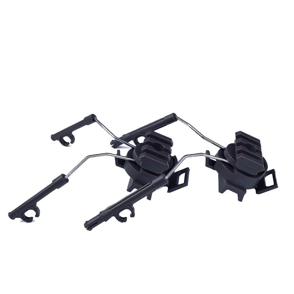 Os grips dos auscultadores e os grips RIS são feitos de plástico. A barra RIS incluída é feita de metal. Este kit permite-lhe prender os auscultadores ao seu capacete.
