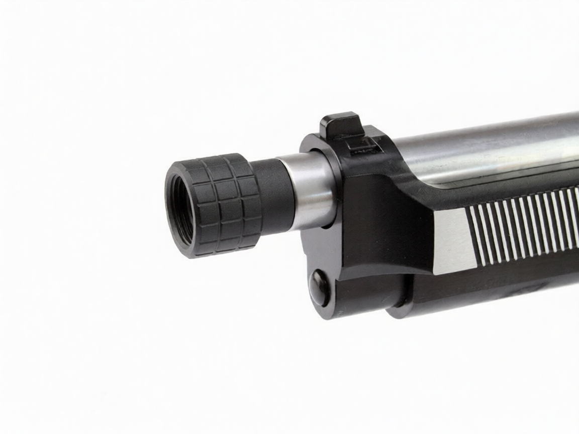 Adaptador para silenciador de armas. De rosca de 11 mm CW para 14 mm CCW, compatível com quase todos os silenciadores. O pacote inclui também uma tampa de proteção para a rosca, que serve principalmente para a proteger quando o silenciador não está a ser utilizado.