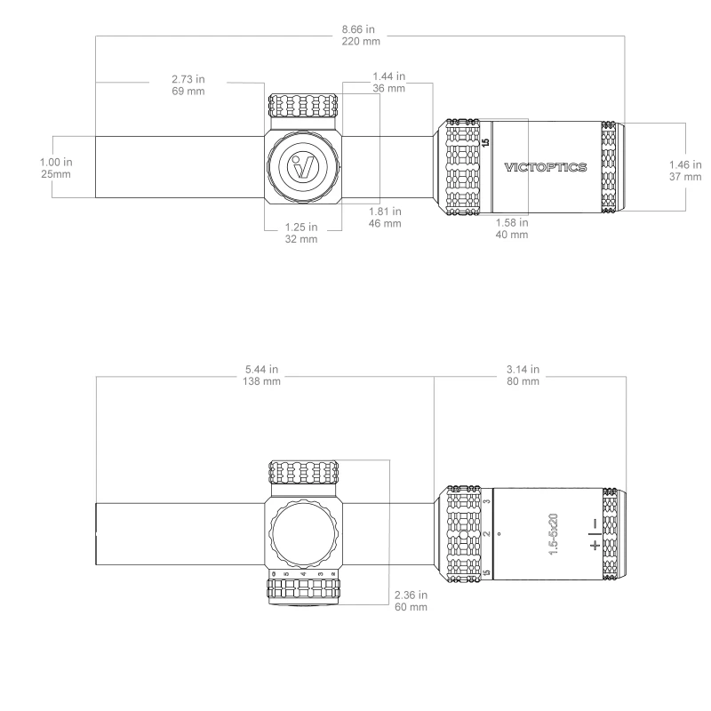Mira telescópica LPVO VictOptics SOI 1.5-5×20 da VictOptics