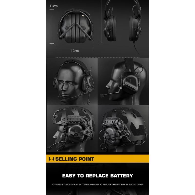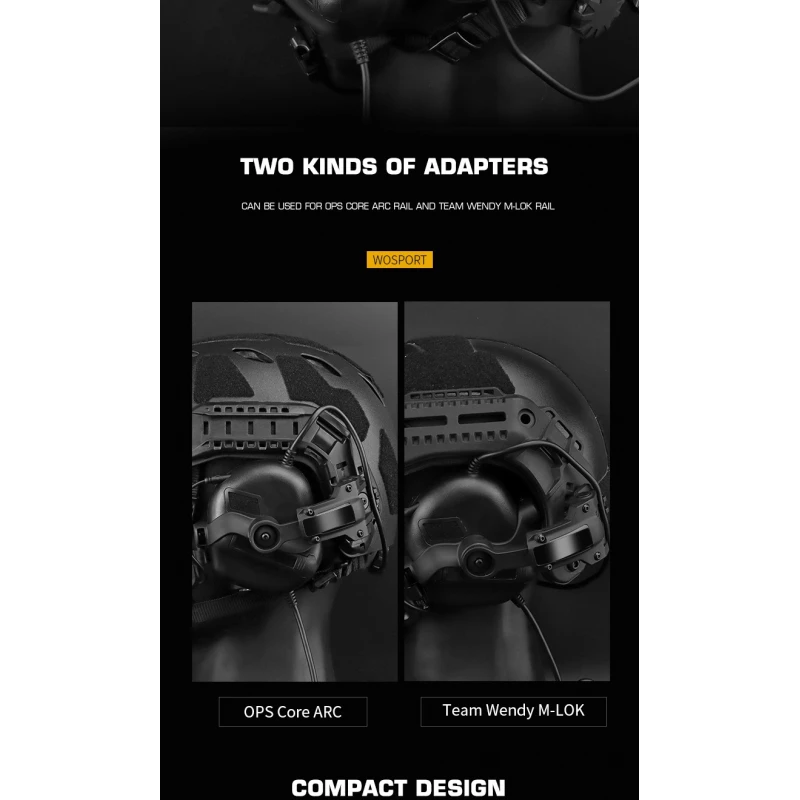 WoSport Active Headset Gen5 + FAST Helmet Mount – Black
